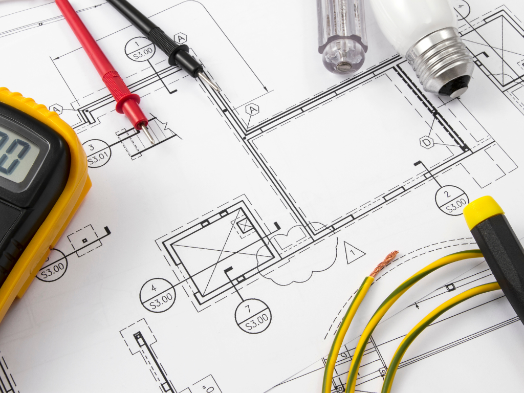 Sheets, callouts, notes, legend, risers, panel schedules, one-lines, coordination y cambios (RFI/field changes).